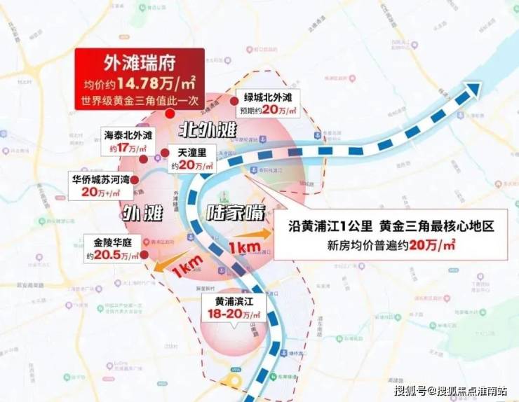 以大连路为起点,沿黄浦江1公里,即世界级黄金三角最核心区域。