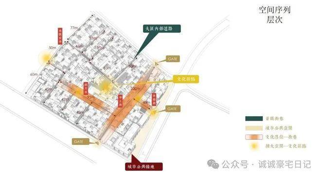 士林润园社区规划可分为蓬莱路城市公共景观以及社区内部景观两个部分,其中市政绿地衔接于上海2035城市总体规划中“蓝绿丝带”的上位条件要求,社区内部街巷空间形成空间序列形成递进的层次,将归家体验的序列依次展开,形成城市街道→入口(一级门户)→街巷→节点空间→里弄门(二级门户)→合院入户(三级门户)的方式,基本可保证大多数住户可体验到两重以上的空间递进。