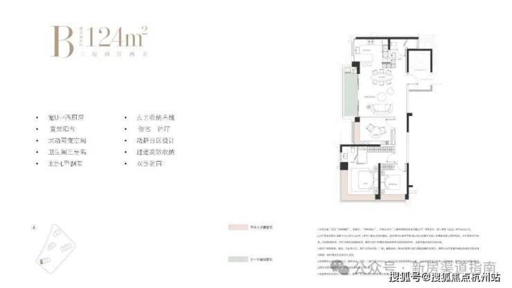 建面约124㎡三房两厅两卫:主力入门户型,三开间朝南,户型方正