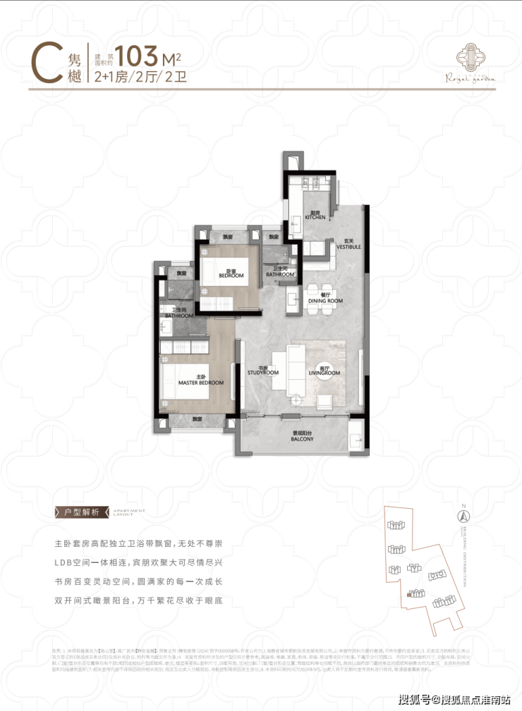 建筑面积约103m2的2+1室2厅2卫