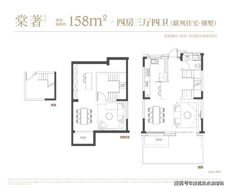 项目由27栋地上3层联排、4栋地上四层叠墅组成,主推建面约158-165㎡联排、建面约139-142㎡叠墅。