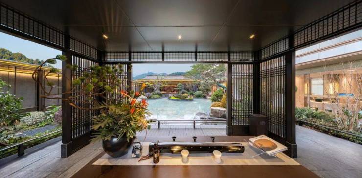 唐风美学:石材 + 香槟金铝板立面,“宴乐七境” 中式园林