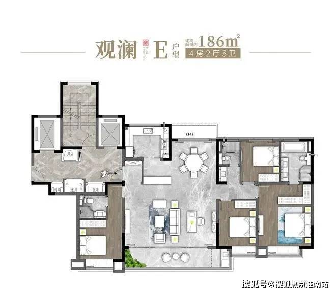 部分户型具有标准层高设计,户型方正,空间使用性高,有独立玄关提升隐私性。4 室的设计适合改善型人群,2 卫的配置可避免抢卫生间的尴尬,保证主人生活的私密性。餐厅和客厅无缝连接,营造出局部大空间的体验。房间动区简约大气,提供舒适的生活娱乐氛围。部分主卧采用套房设计,扩大了卧室面积,配有独立的主卧卫生间,提升了主人的居住体验。部分户型的主阳台朝南,若装配落地窗,采光较好,且户型朝南的房间较多,可充分享受 “冬暖夏凉” 的舒适体验,同时南北通透,厨卫全明,室内采光无死角。