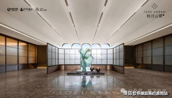 约50米宽幅恢弘大门庭、环岛式酒店落客区、朗阔挑高大堂,塑造层层叠翠归家仪式,辉映江南的封面,尽显翡翠的昭示感。