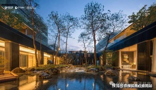 特邀近180年历史日本植弥加藤造园社共创设计,以“千里江山图”为灵感取境,巧妙运用景观高差处理手法打造下沉式庭院,围合一方大美隐于内的“泛会所空间”。