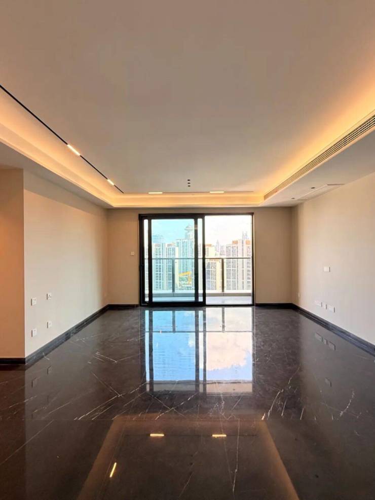 精装三大件齐全:标配中央空调、地暖、新风系统,厨房配备方太/老板厨电、嵌入式洗碗机与冰箱,卫浴采用科勒/高仪品牌