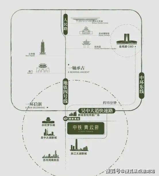 ◎发展之环:中环东接园区产经引擎,西融狮山创新脉络,南承太湖新城生态蓝图,北启高铁枢纽经济,便捷通达苏州多中心,启幕现代化城市发展新篇章。