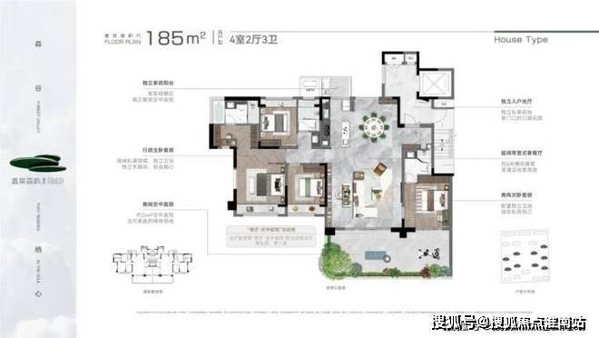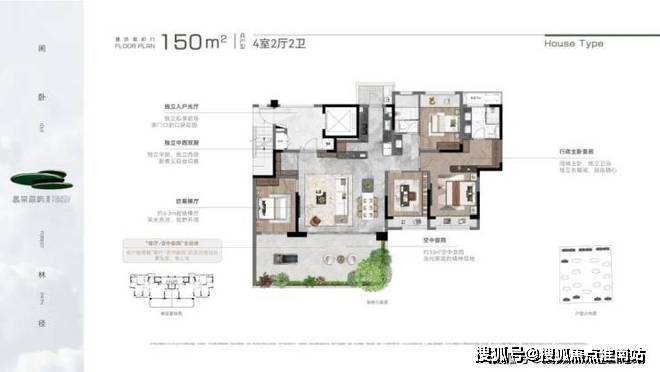 产品规划:建面约150㎡、185㎡、220㎡,户均约30-50㎡空中庭院