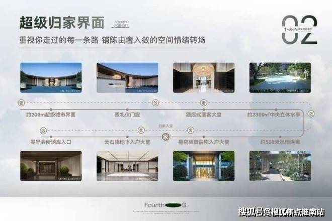 在公区建设上也比较出色,打造约200㎡超尺度迎宾界面、约2000㎡下沉式会所、约4000㎡架空层泛会所、星空顶车库、高约6米的归家大堂等。