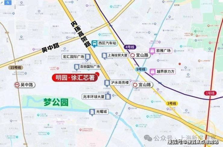 项目属于徐汇田林板块,与徐家汇仅隔1条内环高架,步行可进站3/4/9号线宜山路站,到15号线吴中路站也不远,周边生活配套丰富。
