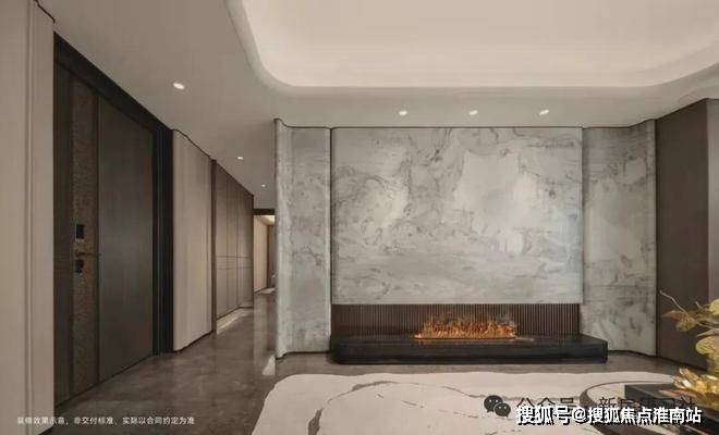 为一块奢石弧形工艺,投入翻倍的成本,整屋坚持用一种昂贵的木饰面贯通始终,从而实现整体艺术风格的统一。
