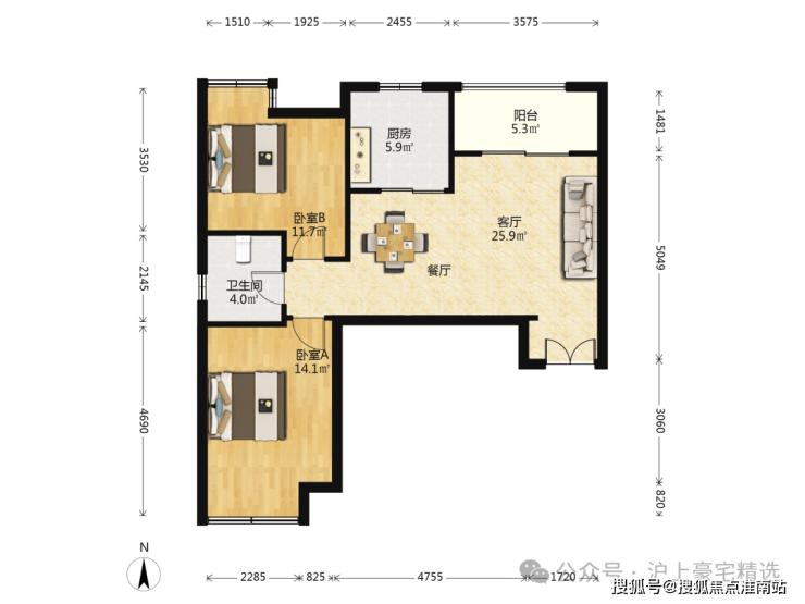 项目由三栋高层加一栋小高层建筑组成。作为苏河湾板块内次新房,以小户型为主,主要是88m²的精致2房以及102m²的灵动小3房,另外还配有66m²1房和141m²3房等多种户型。