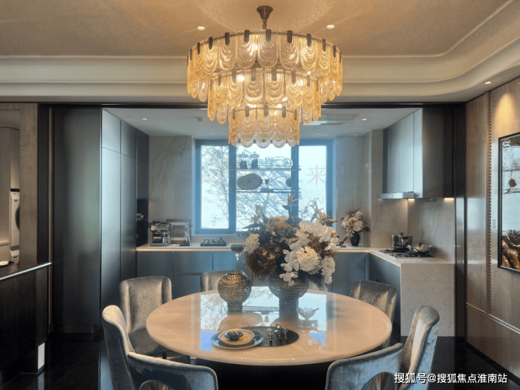 中西双厨+三阳台: 社交中岛与实用中厨分离 ,满足家庭聚会与日常烹饪的不同场景。三阳台设计最大程度引景入室,拓展活动空间。