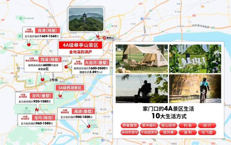 杭州5A级景区:西湖周边早已没有新房可供应;西溪湿地周边的蒋村低密楼面价8.8万/平,放风未来总价6000万级起;主城周边AA级景区新房罕见900万内选项,唯有溪韵满庐既有皋亭山风景,总价仅600万级,堪称景区新房价值洼地。