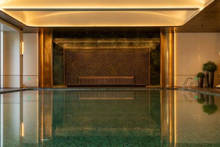 宝格丽同款泳池: 复刻了罗马宝格丽酒店的马赛克艺术,墙面通铺爱丽丝白大理石搭配绿野仙踪石材,颜值高到可以直接出片。