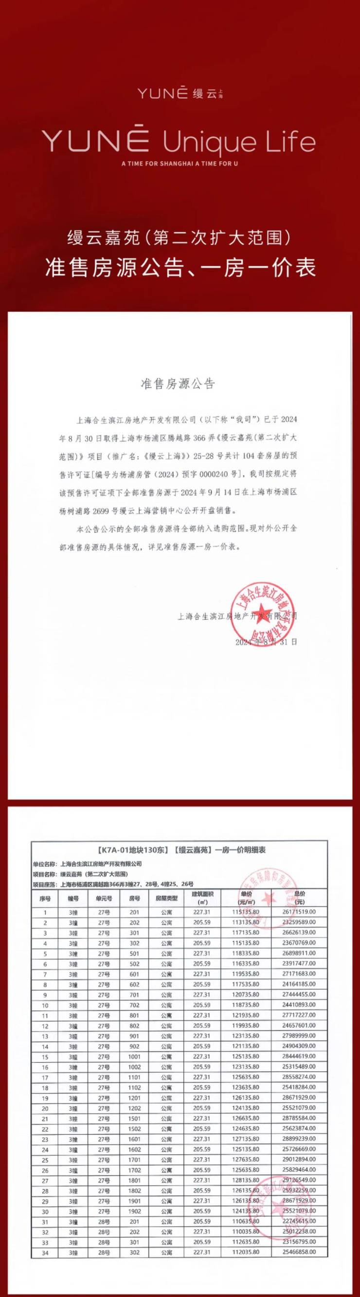 缦云上海三期一房一价表:
