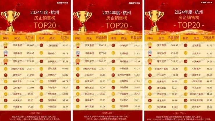 荣登2024年1-10月杭州房地产全口径榜、流量榜𝑻𝑶𝑷𝟑