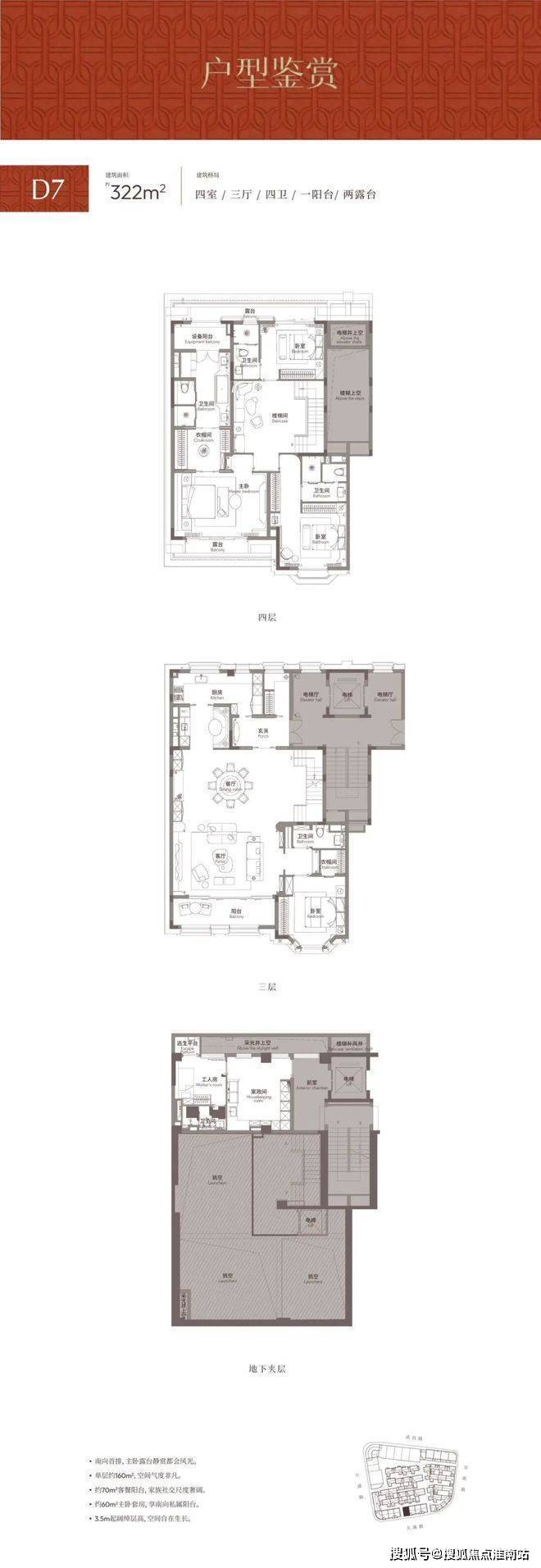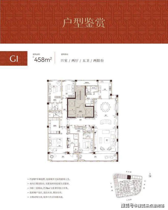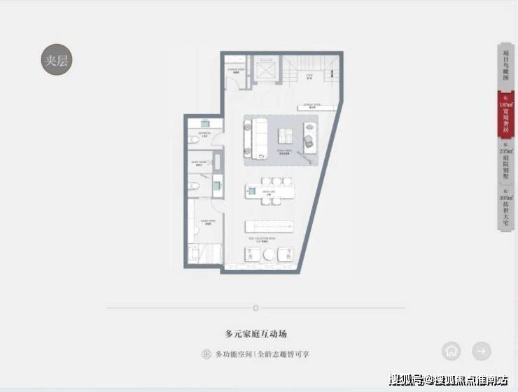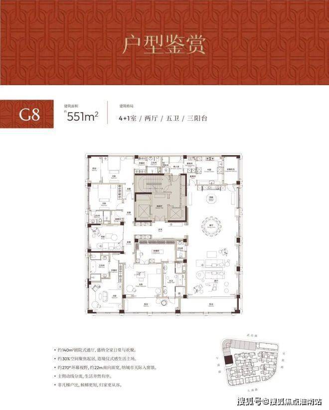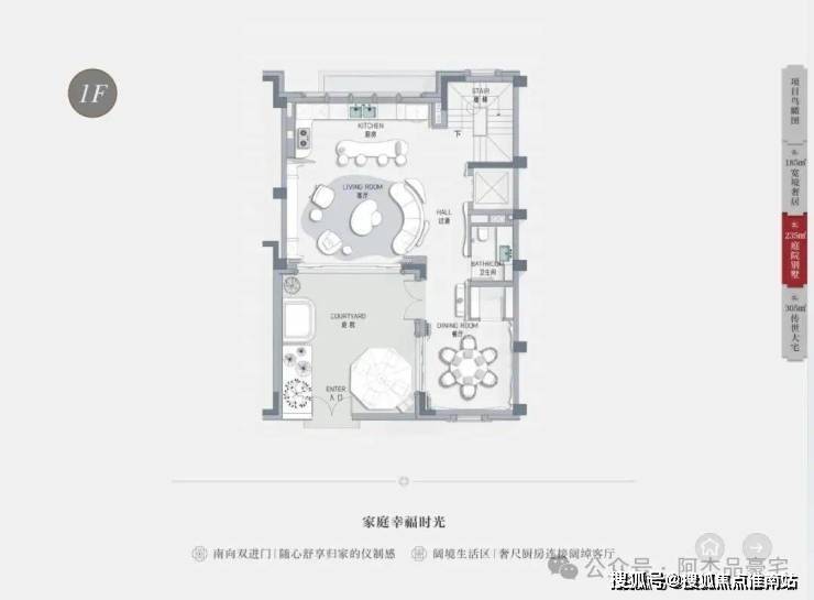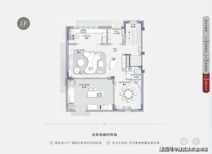 南向客厅灵动分区,双采光庭院引光入室,多卫设计便捷舒适。