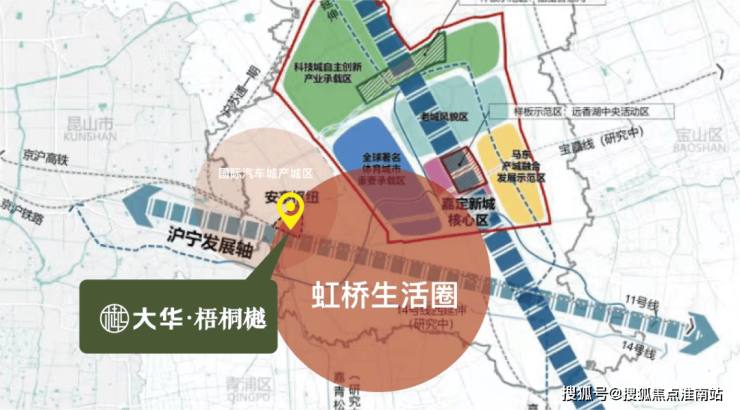 项目距离11号线上海汽车城站约2.4km,不算真正意义上的轨交房。轨交14号线横亘安亭境内的规划建议,也已提上日程。