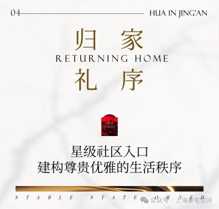 『星级社区入口 建构尊贵优雅的生活秩序』:项目共规划7栋小高层,4栋联排别墅(历史风貌建筑),尊享星级社区入口,以高辨别度大门、尊贵大堂,为每一次归家营造尊崇仪制。