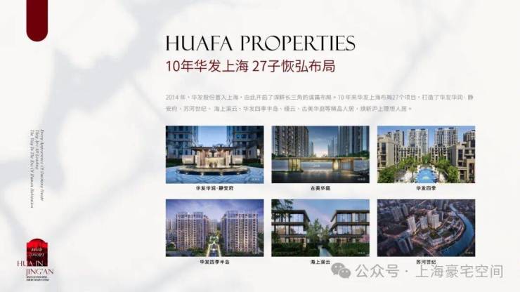 10 年来华发上海布局27个项目,打造了华发华润·静安府、苏河世纪、 海上溪云、华发四季半岛、缦云、古美华庭等精品人居。