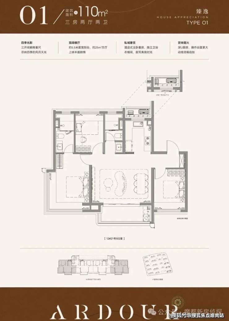 招商中旅·观境,建面约110㎡3房和建面约144㎡4房样板间已开放,单就户型而言,属实不错。