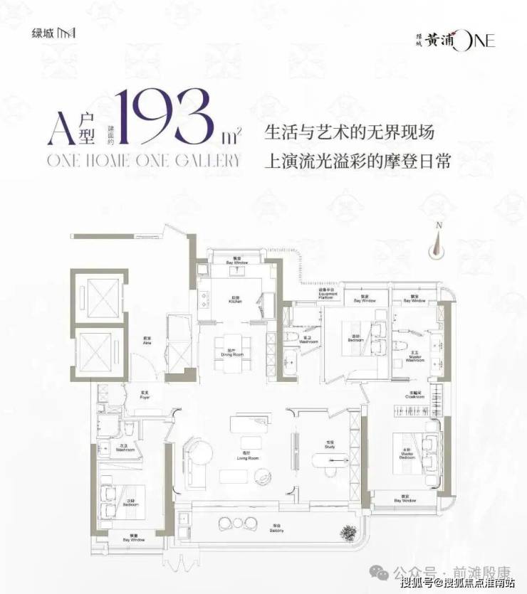 推出建面约155-193㎡3-4房均价17.2万/㎡