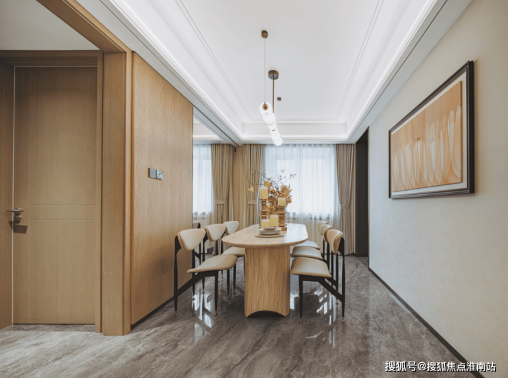 客餐厅依旧是点睛之笔,客厅净面宽约3.7米,搭配大阳台,空间感十足;同时餐厅北侧就是采光窗,客餐厅格外通透。