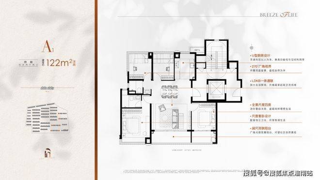 总价约514万起即可上车的王炸级洋房户型,三批次同步将热势加推!建面约122㎡4房2厅2卫墅境洋房,3+1飞机户型,客厅开间约8m,LDKB一体化设计,以餐厅为中轴的生活交流动线,平衡生活的意趣与从容的格调;双联阳台的突破创新式设计,让整体阳台面宽突破到约8.2m;