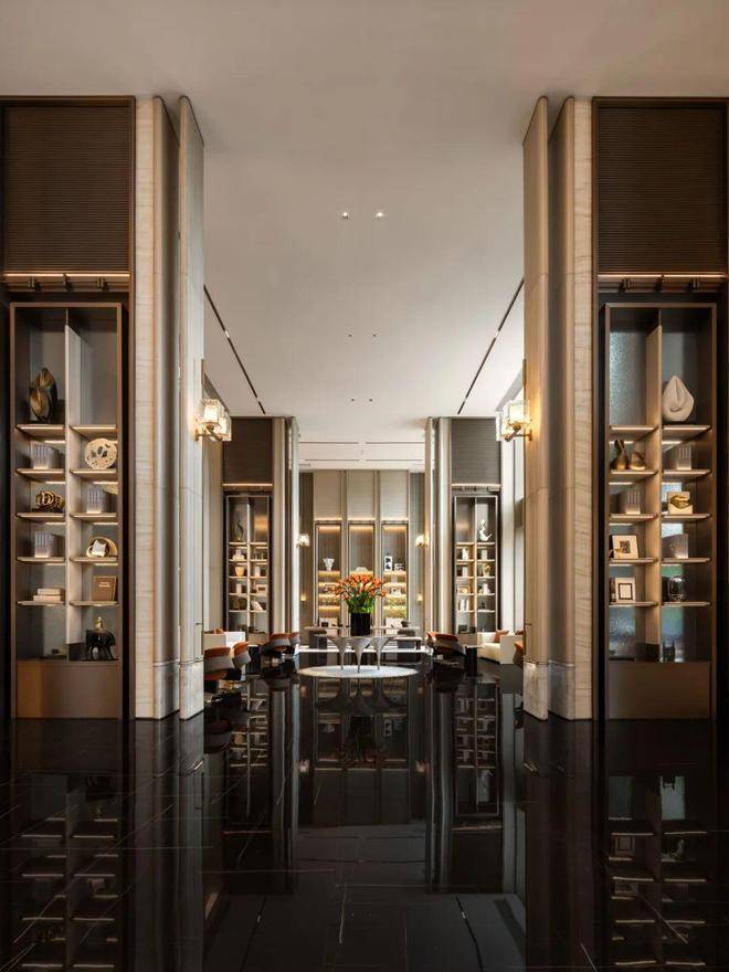 珍贵石材、名贵木料、定制金属,国际一线品牌,匠心雕琢臻于至善,汇聚全球高端品质,为业主献上“私人订制化”的理想生活,营造穿越未来的经典审美品位。地下大堂同样低调奢华,从地面墙面的铺装,到顶部对称造型的吊顶,世纪国泰中心在细节上毫不敷衍,让宾至如归的仪式感,贯穿所有的归家动线。