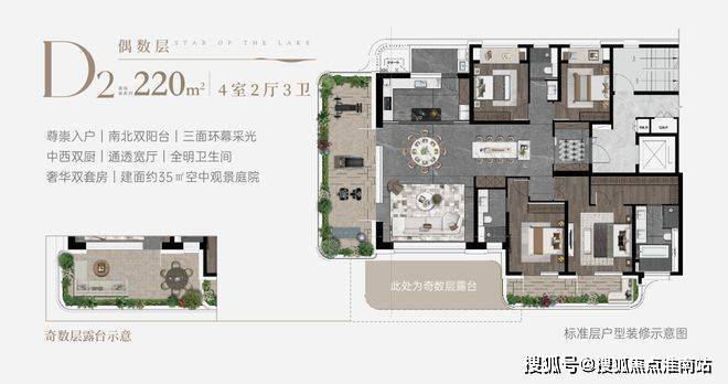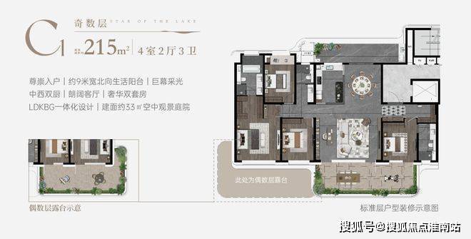 175-240㎡大平层:4室2厅3卫+双主卧套房,配中西双厨设计