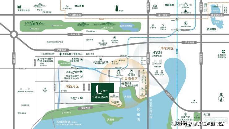 中建·太泽之星是由世界500强企业中建三局与苏州湾集团联合打造的湖居四代宅项目,位于吴中太湖新城CBD核心地段(橙天嘉禾剧场旁),直线距离太湖仅400米,是苏州稀缺的湖景豪宅。项目总占地面积约3.98万㎡,总建筑面积约7.96万㎡,容积率2.0,绿化率35%,规划12栋16-19层高层住宅,共394户,车位配比高达1:2.5,定位为"塔尖圈层"纯改善社区