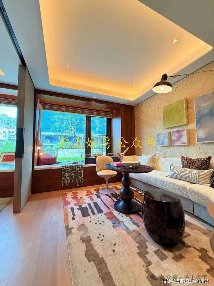 约17.2米环绕观景台:约238㎡户型的客餐厅,位于户型的顶端。自东向南环绕270度的观景台长达约17.2米,在这样的客厅,甚至可以踱步欣赏窗外的满眼梧桐。独立会客厅,可以做小茶室或棋牌,更深一步的隐私感,为专享客群定制。