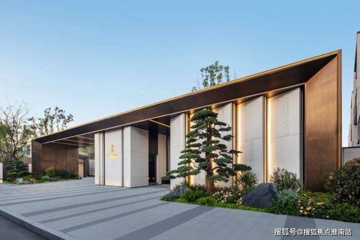 选用温润典雅的天然石材作为基底,中轴对称式布局彰显高门气魄,水景内涌泉汨汨且搭配泛星灯光,转角处的精美艺术景墙,为业主营造更具仪式感和尊贵感的归家体验。