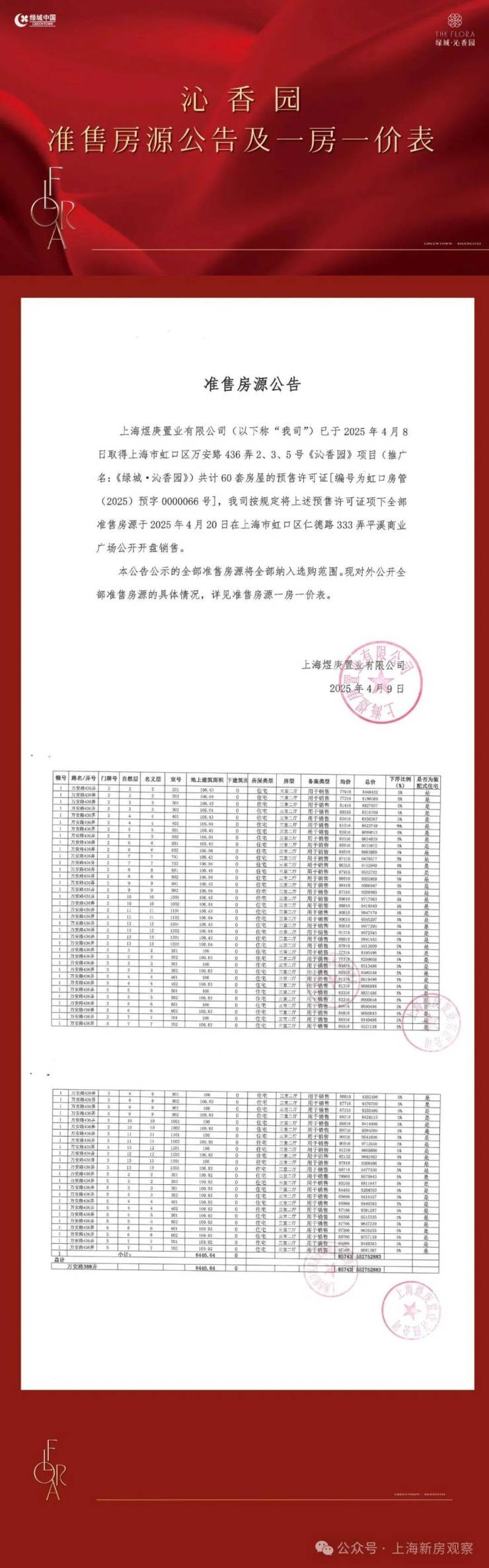 最新消息!虹口·江湾 品质新盘「绿城·沁香园」还有少量工抵房136㎡4房㎡洋房产品,总价1325-1362万;售楼处线上火热预约中!