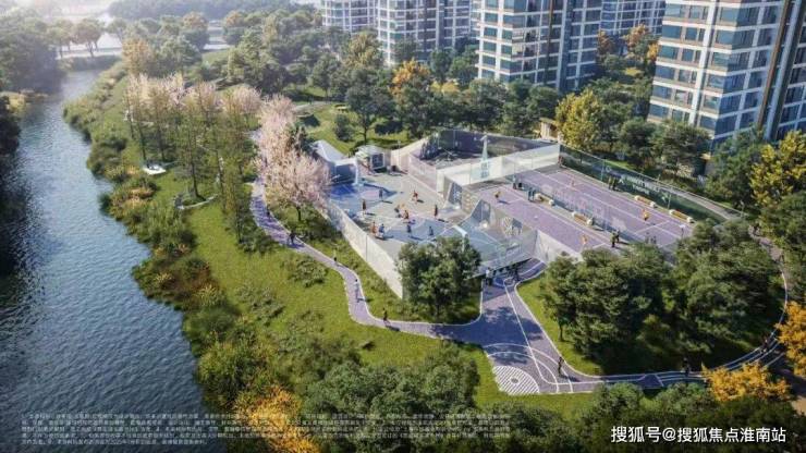 把约12000㎡运动公园搬到楼下,北区为动区,主要为篮球场、网球场等运动场地,年轻人下班后尽情挥汗解压;南侧为静区,主要为躺平草原、火山蹦床,并沿河边打造滨水步道、水上垂钓&休憩平台,是孩子撒欢的自然课堂,也是父母茶余饭后漫步好去处,一家三代的快乐都能在这里安放。