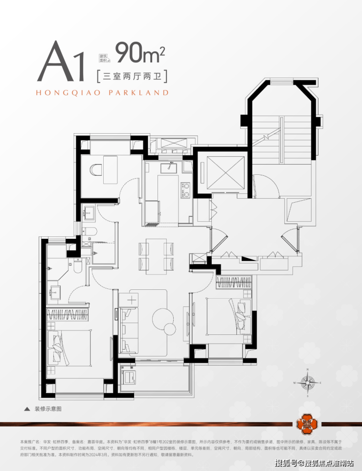 项目首开户型图发布:「约90㎡ 3房2厅2卫」