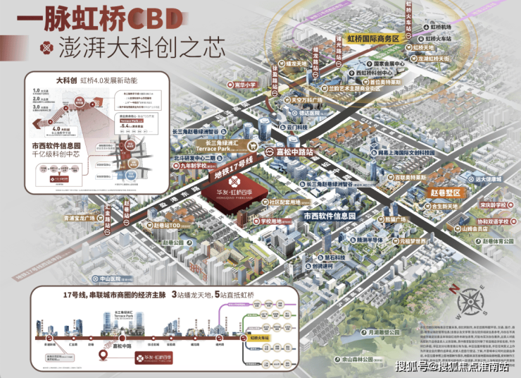 华发·虹桥四季,毗邻嘉松中路TOD,正位于高能级商办极核的风暴眼。众多产业集群的入驻带来高薪人才的涌入,板块的住房需求也迅速上升,来看一下这块宝藏之地的资源圈有多能打。