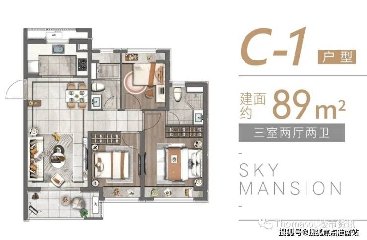 除了建面约89㎡的洋房,建面约83~89㎡高层户型也各有所长,均是三房设计,无论是从结构布局,还是空间利用皆相得益彰,承载一家人的美好生活。高层户型如下: