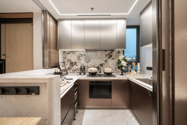 厨房: 集成方太净洗中心与嵌隐升降烟机,将清洗与净烟效率最大化。
