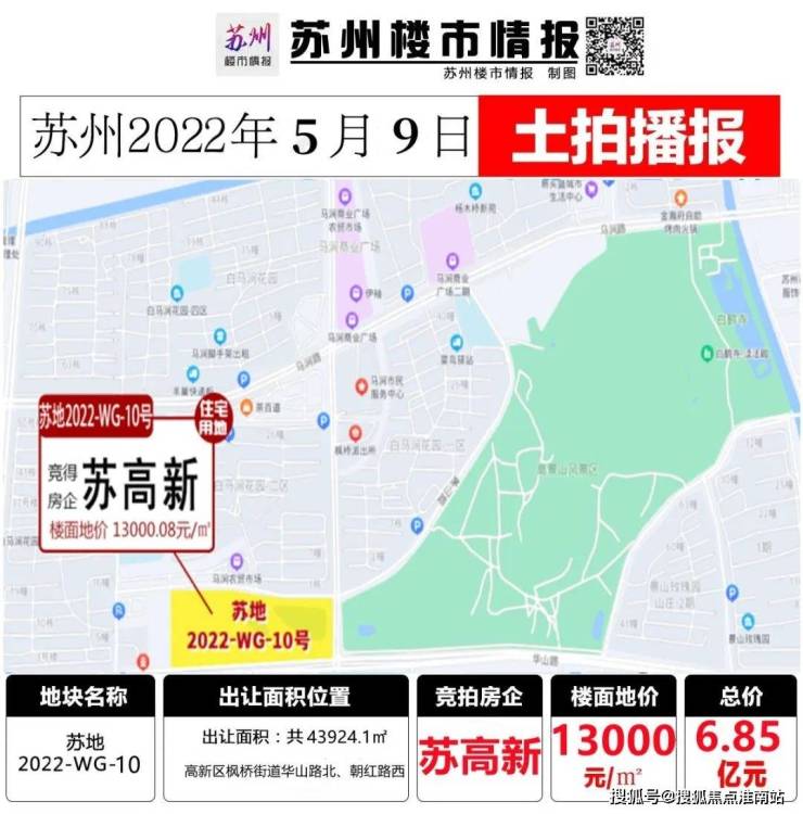 项目具体位置就在位于高新区枫桥街道华山路北、朝红路西,是2022年5月9日,苏高新以底价68522万元竞得,成交楼面价13000元/㎡。