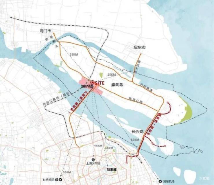 【1条轨交】崇明线———地铁崇明线呈“东北-西南”走向,西南起于浦东新区金吉路站,东北止于崇明区长兴岛站,联通了浦东新区金桥经济技术开发区、外高桥保税区、曹路镇、崇明区长兴镇等,大幅拉近崇明与上海的距离