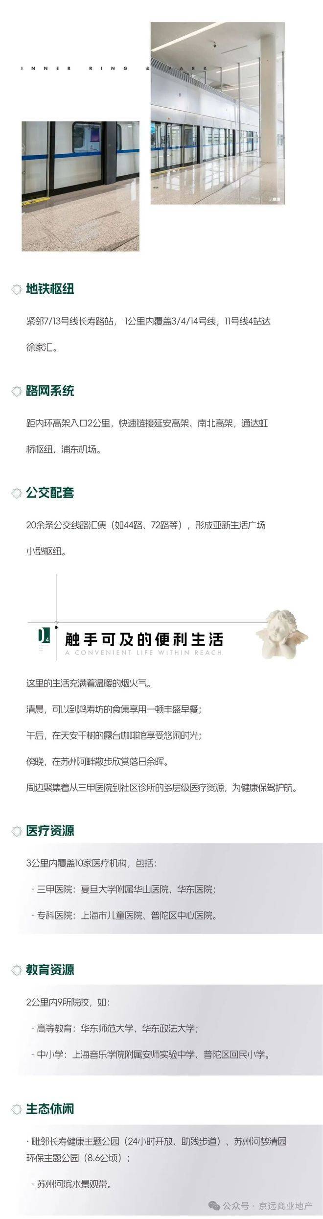 项目卖点及地址详情:世纪·江宁印位于上海普陀内环内长寿路板块核心,售楼处地址为普陀区江宁路地铁口附近(具体请致电预约)。在售47–133㎡带阳台小户型,总价约218–606万,单价约5–6万元/㎡,物业费约8.8元/㎡·月,总高23层。紧邻地铁7/13号线长寿路站,步行可达,五轨交汇。周边长寿路商圈、月星环球港、我格广场等配套成熟。核心卖点:内环现房、户户带阳台、87%高得房率、精装交付、低门槛上车市中心。