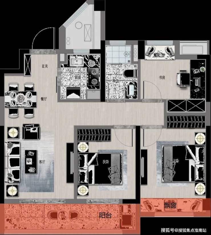 约6.2米面宽的大阳台,如一面镜子,在光与景的交辉之中,反射出生活的唯美与诗意。北向带大书房,静谧而宽绰,更有飘窗引光入室,恰为徜徉书海的你,添置一道惬意的柔光。即便是一段独处时光,也有温馨相伴。