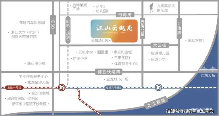 江山云樾府坐落之处,配套也十分亮眼。交通上的便利,但看一条德胜路,就已将钱塘新区与未来科技城两大城市热土完美串联。城西科创与城东智造这两条杭州人再熟知不过的大走廊,也因德胜快速路组成了当红CP。如此,在交通与产业的辉映中,钱塘新区以“钱江新城2.0”的时代标签,绽放新杭州的别样荣光。