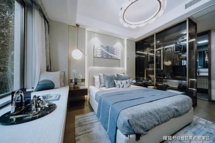 该户型,三开间朝南,南向约9.4米奢阔面宽,将充沛阳光洒落在主卧、次卧、客厅,将日常起居,从一开始,就赋予了光的特性:温暖、和煦。