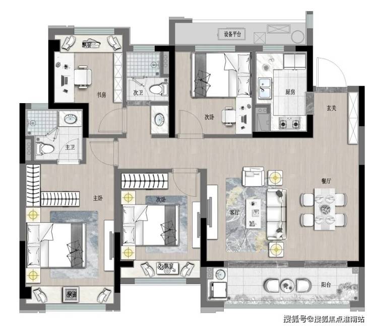 118㎡户型在设计上整体方正实用,以经典的“3+1”布局,飘窗设计,保证各个房间采光充沛和空气清新,契合成长型家庭在各个阶段的需求,当家庭迎来二胎或者三代同堂都能从容不迫。