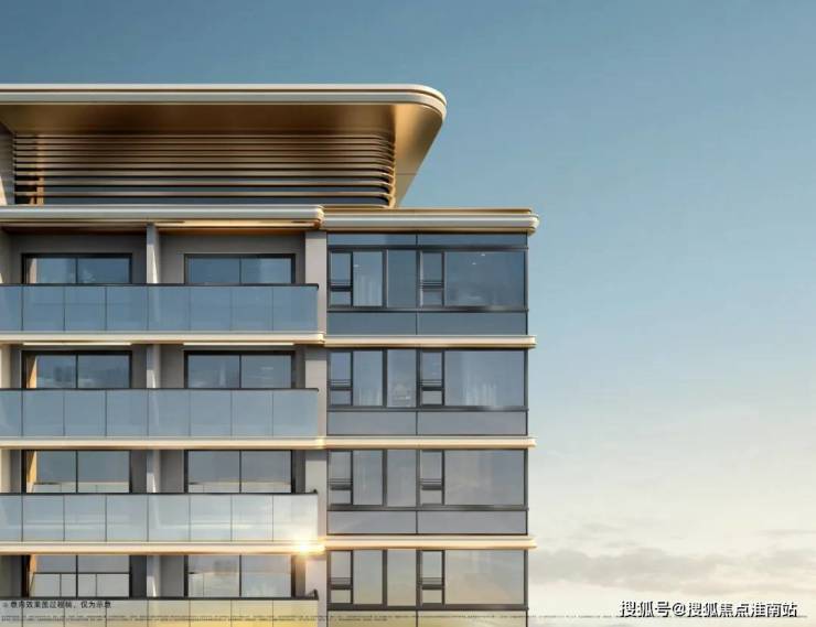 保利海上印采用了3段式立面,以石材+铝板铸造基座,以大面积玻璃幕墙和金属进行中段装饰!远远望去品质感十足,未来必然成为闵行梅陇新的天际线!