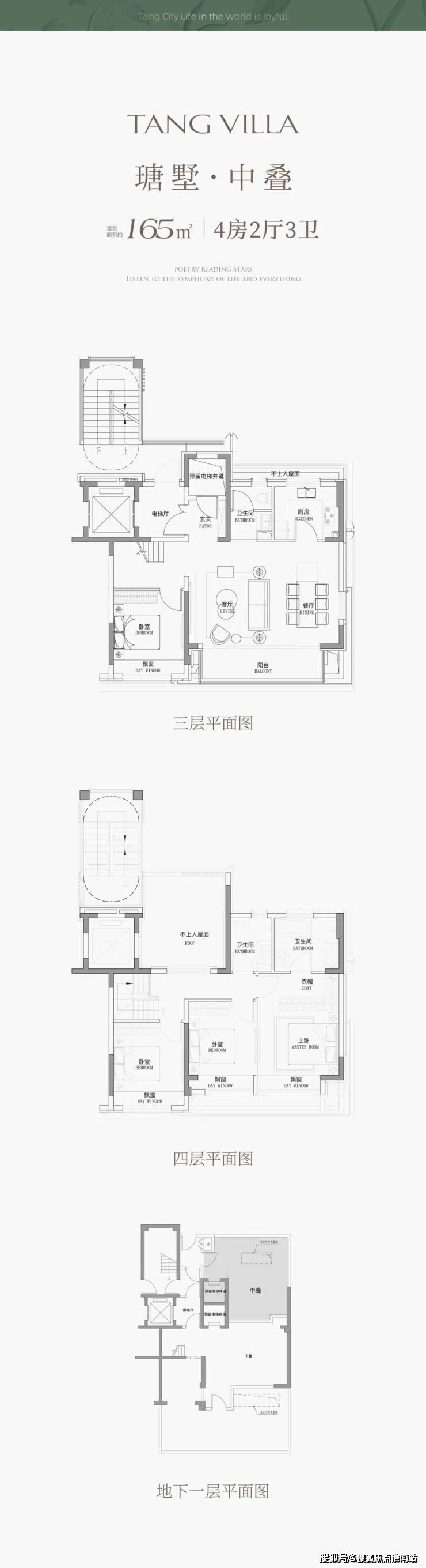 项目叠墅户型的最大创新与亮点,是颠覆了上一代叠墅产品两开间窄面宽,且上/中/下叠附加值不够丰富和平衡的传统设计思路。