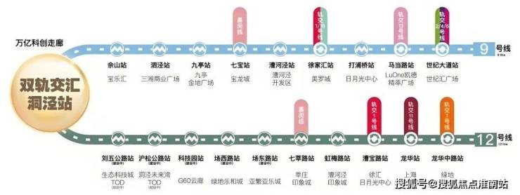 9 号线(已运营)与 12 号线(在建)洞泾站双轨交汇,作为松江新城 “十四五” 核心交通枢纽,双轨交不仅是通勤效率的提升,更是串联全城繁华的 “价值金线”—— 8 站直达徐汇,无缝衔接虹桥枢纽,高效生活圈自此划定。